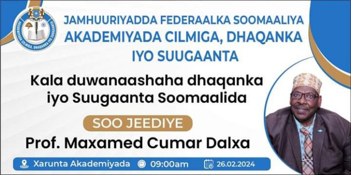 Professor Maxamed Cumar (Dalxa) ayaa Xarunta Akademiyada Cilmiga, Dhaqanka iyo Suugaanta ku soo bandhigay cashar ku saabsan kala duwanaanshaha dhaqanka iyo suugaanta Soomaalida.